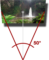 就影院放映来说,相应的观看距离通常会更近一些,具体取决于选择的座位。宽银幕的长宽比也可能是为了延伸到观众的周边视角。在大多数大银幕影院中,靠近中后方的座位会形成45°到60°的视角,但靠前的座位可能会形成90°或更大的视角: